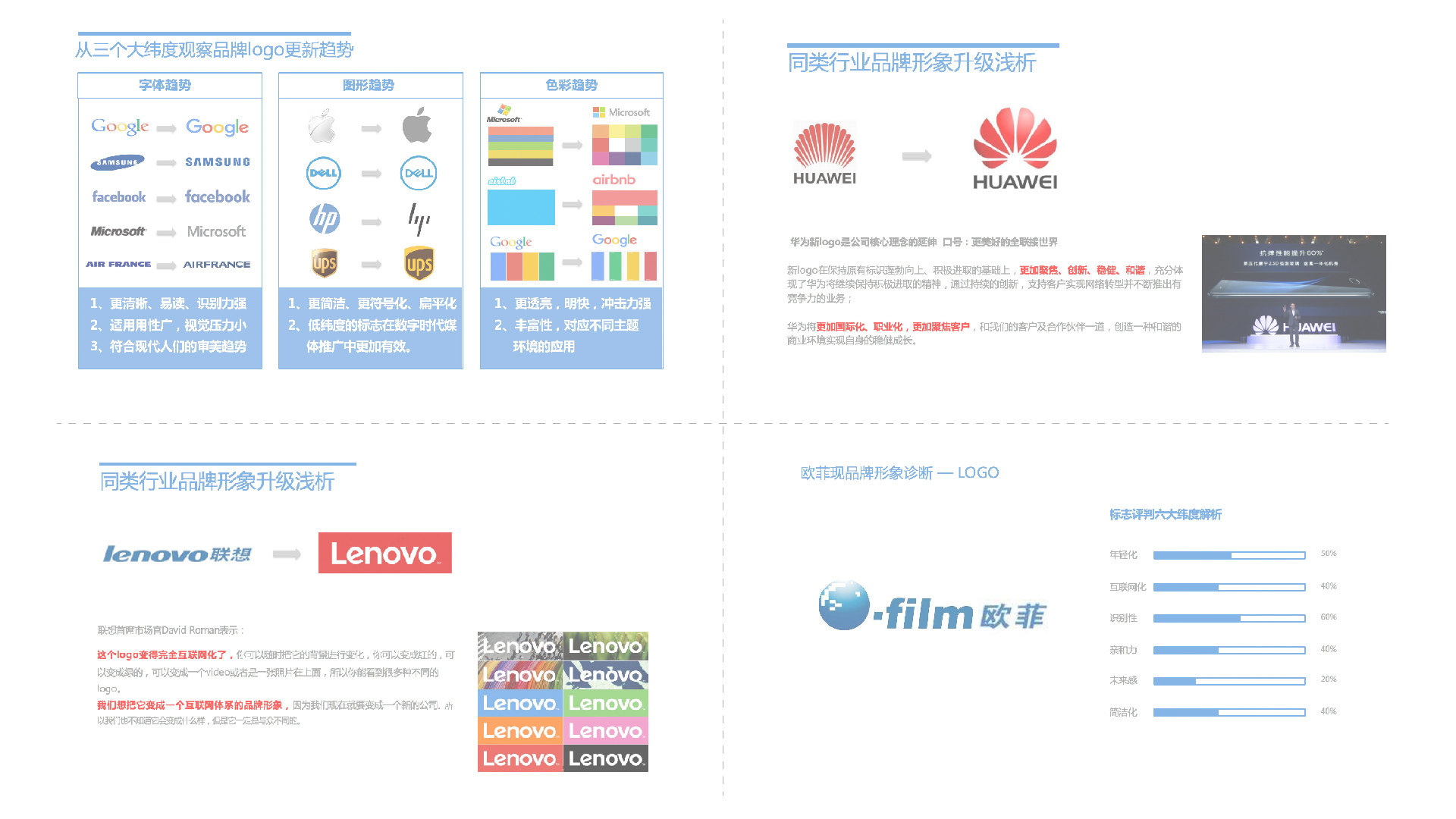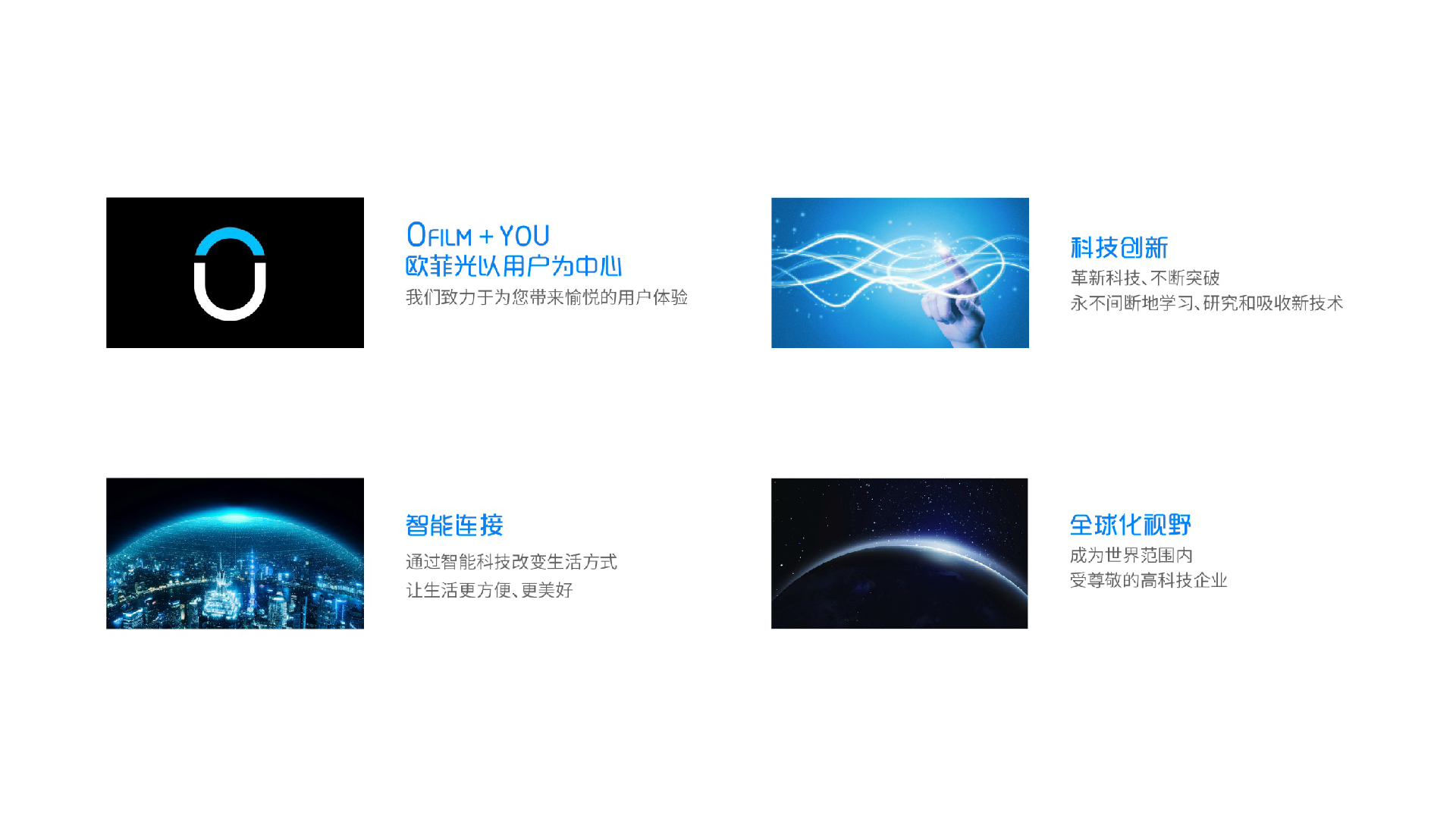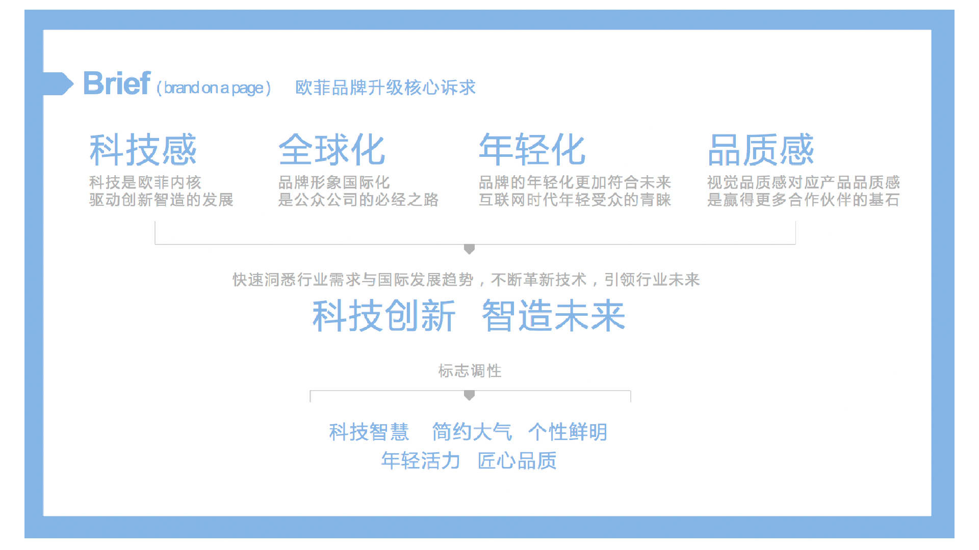 和與德在此次項目中協助歐菲光進行品牌標志更新,將歐菲光以客戶為中心、科技創新、智能連接、全球化視野等元素融入新的品牌標志中,使得品牌標志更加年輕化;同時,出具視覺識別指引手冊,指導歐菲光通過系統化的視覺符號,將其企業文化、服務宗旨和功能傳送給社會大眾,強化企業形象,并使品牌傳播獨特而且容易記憶。