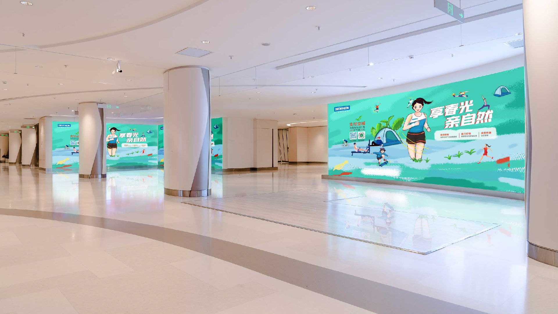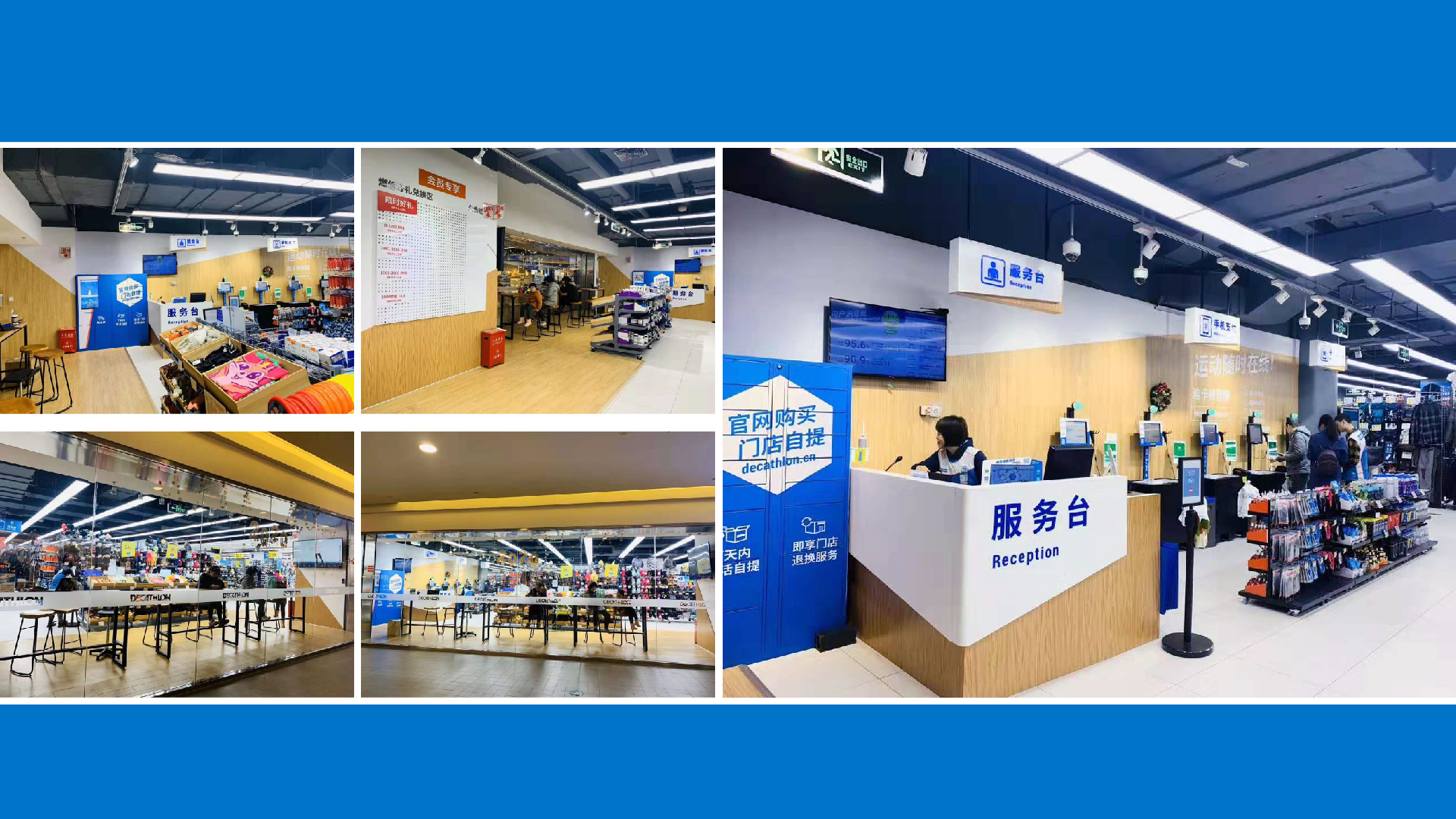 和與德為迪卡儂一家新開的量販店進行了從門頭、海報到手冊進行了一體化店面設計,高效、快速完成了設計和施工,贏得了顧客的一致好評。